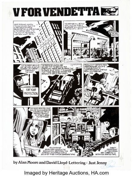 Il tratto di David Lloyd è cupo, realistico, privo di balloon di pensiero. Alan Moore, invece, costruisce un racconto carico di filosofia, citazioni letterarie e riferimenti politici: da Orwell a Shakespeare, da Blake all’anarchismo.